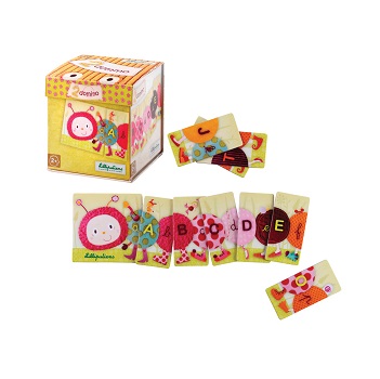 Juliette Domino Duo is traditional and sweet. Gorgeous garden creatures are depicted on the domnioes but turn them over and the alphabet is on the other side. Match Juliette’s body parts with upper and lower case letters to form an alphabet puzzle that stretches 130cm! When play is over pack them all up in the flip top box and pop them back on the nursery shelf.